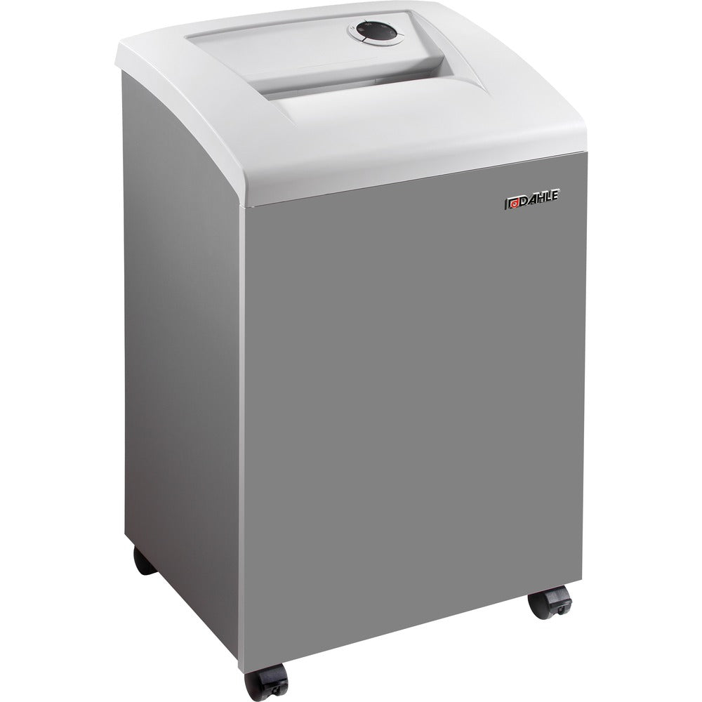 Dahle CleanTEC 51422 Paper Shredder w/Fine Dust Filter - Non-continuous Shredder - Cross Cut - 15 Per Pass - for shredding Staples, Paper Clip, Credit Card - 0.077" x 0.563" Shred Size - P-5 - 18 ft/min - 10.25" Throat - 10 Minute Run Time - 20 Minute Cool Down Time - 30 gal Wastebin Capacity - 1416.83 W - Gray: CleanTEC 51422 Office Shredder destroys confidential information while producing cleaner air. It features an internal filter system that traps up to 98 percent of harmful fine-dust particles. This P-5 shredder produces 1/13" x 9/16" particles with Matrix High Performance (MHP) cutting cylinders. It holds up to 30 gallons of shredded waste. Automatic EvenFlow Lubricator provides continuous oil across the cutting cylinders to maintain peak performance. Unique cylinders in Trident Grip jam protection continuously grip paper in three places, pulling it through evenly and cleanly. German-engineered, cross-cut shredder also delivers oil-free, hassle-free operation so you can save money on supplies and shred at optimal performance without the aid of oil. It also offers 10-1/4" feed width, quiet operation at 53 decibels, 13 to 15-sheet capacity and the convenience of automatic on/off and bag-full auto off. This machine can shred staples, paper clips, credit cards and CDs/DVDs. -