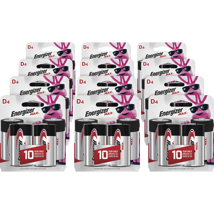 Energizer Max Alkaline D Batteries: Max Alkaline D Batteries provide a long-lasting power source for such common workplace devices as calculators, pencil sharpeners, cameras, flashlights and portable tape recorders. They also hold their power for up to 10 years while in storage so you have power when you need it most. Batteries are date-coded and 100 percent mercury-free. - 48 / Carton