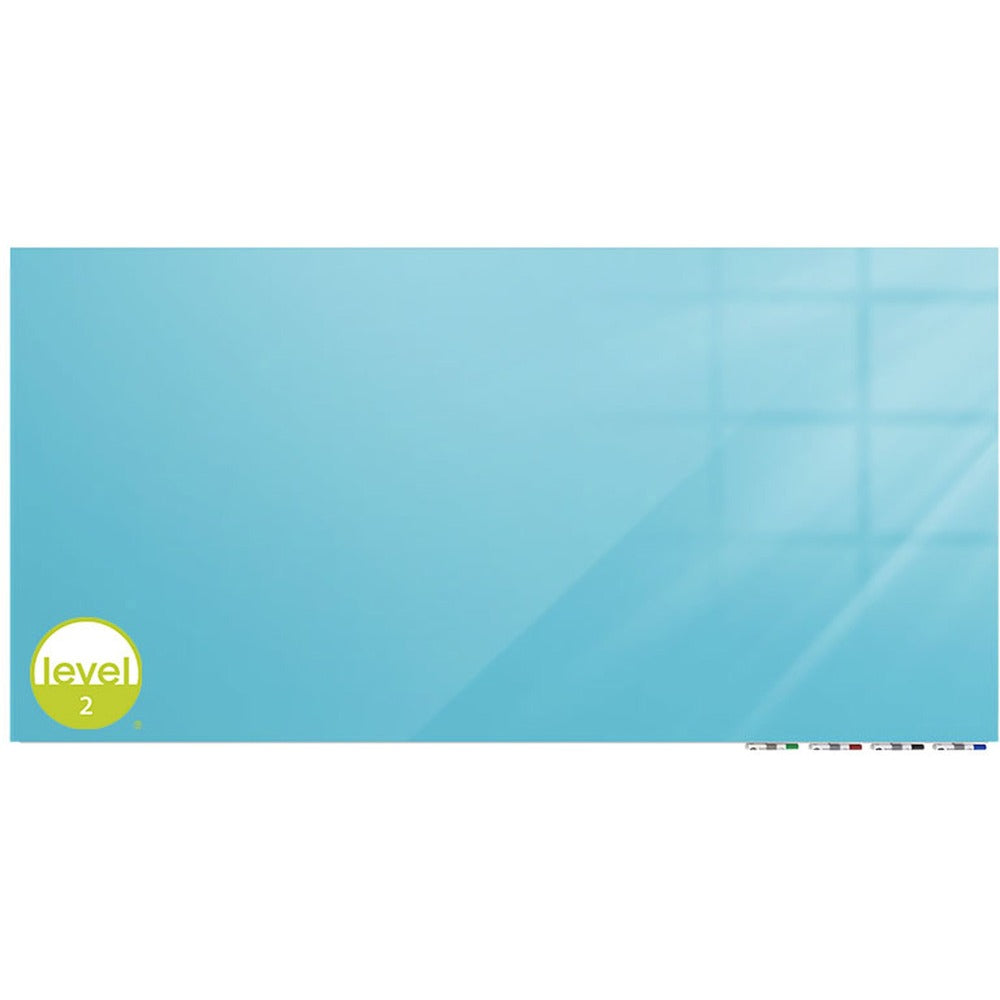 Ghent Magnetic Aria - Horizontal - 60" (5 ft) Width x 36" (3 ft) Height - Blue Tempered Glass Surface - Rectangle - Horizontal - 1 Each: Aria Low-Profile Glass Whiteboard achieves the look of weightless, floating glass. No visible hanging hardware or stand-offs allow the beauty of the frameless glass to complement any decor, creating an unobstructed writing surface. Heavy-duty hanging system promotes security and confidence in the installation. Hang your board horizontally on a variety of surfaces such as drywall, concrete or brick. Premium, 1/4" thick tempered glass floats just 1/2" from the wall without bowing, straining or moving. Use it as a single board for personal offices and conferences rooms or to create a glass whiteboard wall by lining up multiple glassboards in a row. Lower, steel support bar doubles as storage for your magnetic markers, keeping the writing surface free from clutter. It comes with four markers and an eraser. - 1 Each