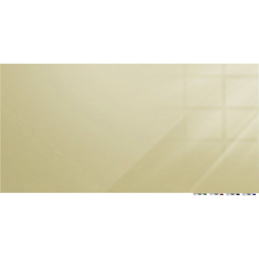 Ghent Magnetic Aria - Horizontal - 72" (6 ft) Width x 48" (4 ft) Height - Beige Tempered Glass Surface - Rectangle - Horizontal - 1 Each: Aria Low-Profile Glass Whiteboard achieves the look of weightless, floating glass. No visible hanging hardware or stand-offs allow the beauty of the frameless glass to complement any decor, creating an unobstructed writing surface. Heavy-duty hanging system promotes security and confidence in the installation. Hang your board horizontally on a variety of surfaces such as drywall, concrete or brick. Premium, 1/4" thick tempered glass floats just 1/2" from the wall without bowing, straining or moving. Use it as a single board for personal offices and conferences rooms or to create a glass whiteboard wall by lining up multiple glassboards in a row. Lower, steel support bar doubles as storage for your magnetic markers, keeping the writing surface free from clutter. It comes with four markers and an eraser. - 1 Each