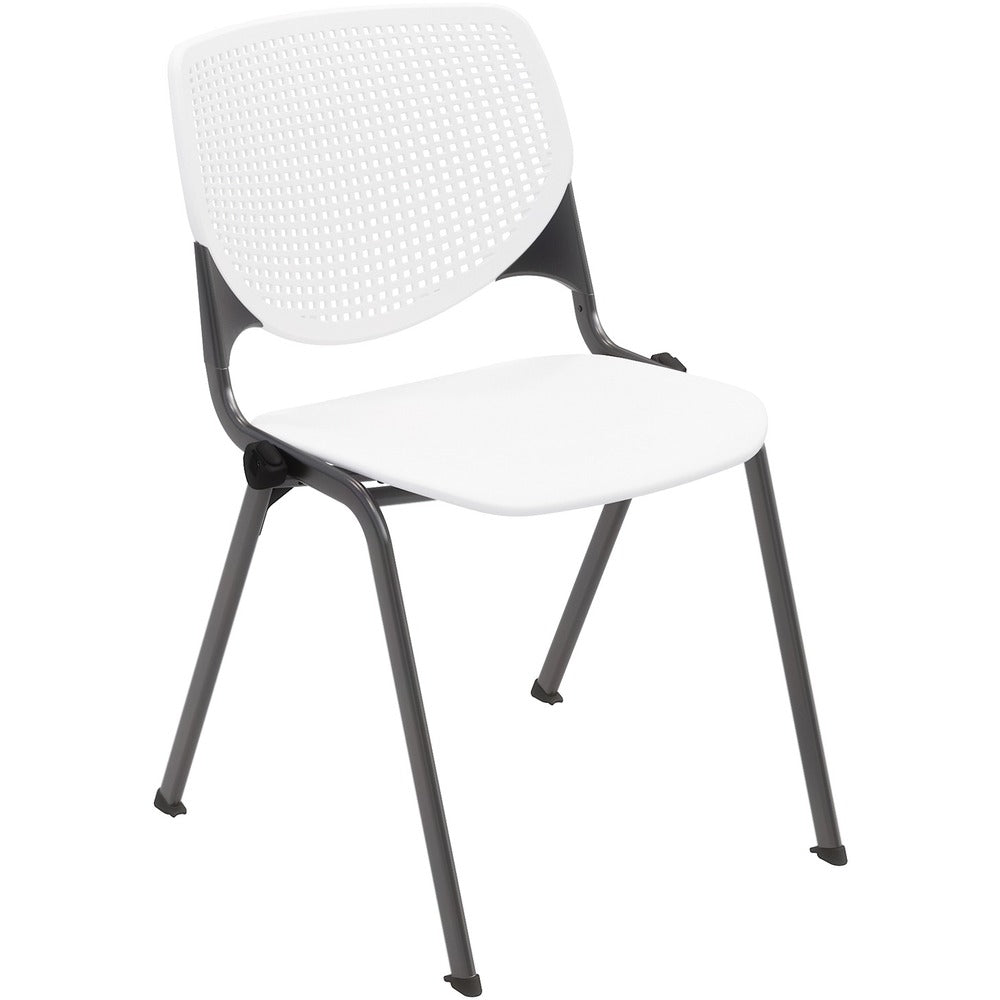 KFI Stacking Chair - Polypropylene Seat - Polypropylene Back - Steel Frame - Four-legged Base - Black, White - 1 Each: This comfortable Stacking Chair is the perfect fit for almost any application. Ergonomic, perforated back allows enhanced circulation while the radius conforms to your back for maximum comfort. Contoured, extra-wide seat pan and a 400 lb. weight capacity provide comfort and accommodate all sizes. Built-in ganging device allows continuous rows. It is perfect for reception areas, conference rooms or any multi-use application. - 1 Each